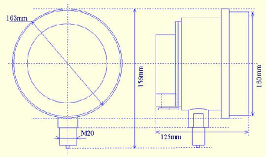 This instrument can use in the site that is with explosive mixture, used for measuring the copper and copper alloy, common carbon steel and other non-corrosive of crystals, non-solidification of medium’s pressure (negative pressure). Can use together with the relevant explosion-proof property electric element via contact device. It has a variety of function to measured medium pressure, such as automatic control, alarm, signal remote etc.